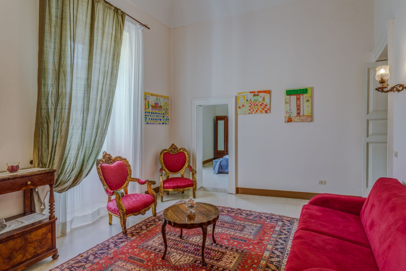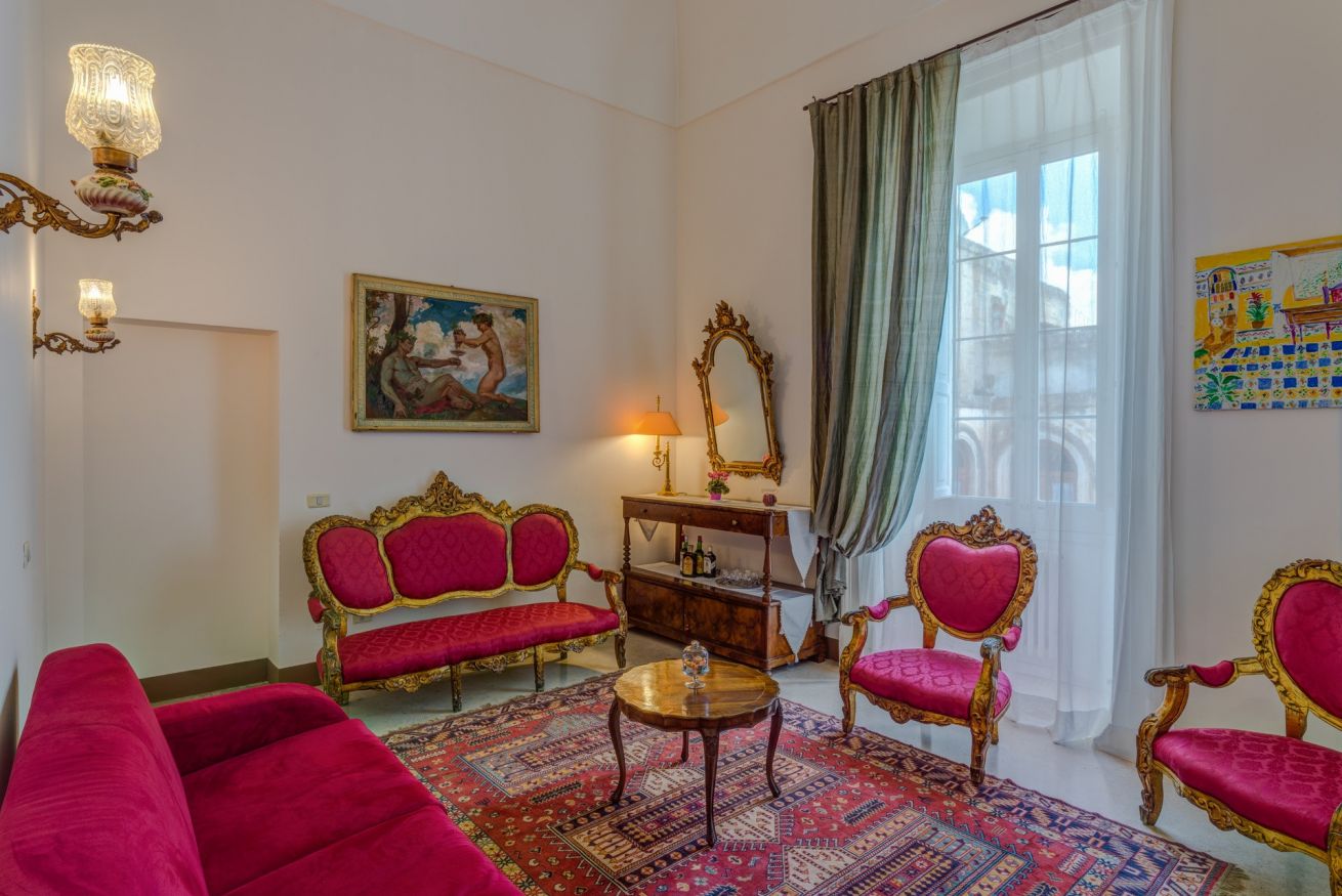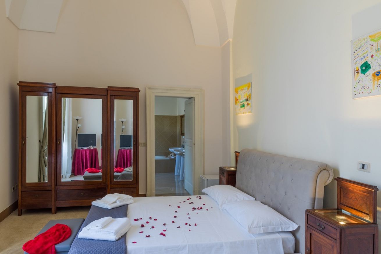 ampia suite (60mq) composta da due camere e ampio bagno privato la prima camera è arredata con ampi divani uno apribile per diventare letto matrimoniale la seconda camera dotata di letto matrimoniale.